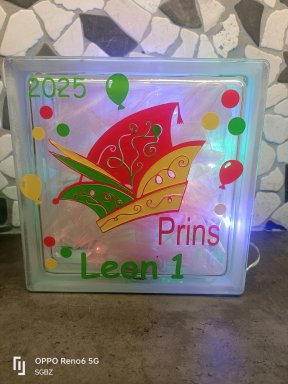 Glasblok in het thema carnaval met naam/namen hoogheden.