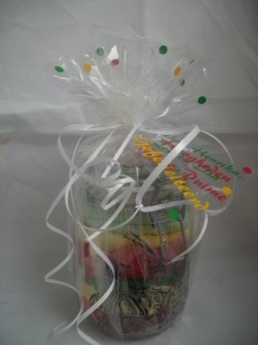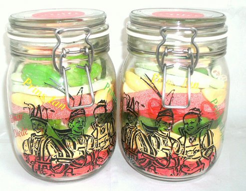 Snoeppot gevuld met rood,geel groen snoepgoed.