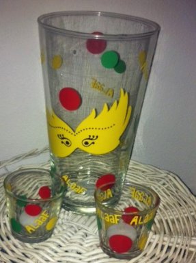 Prachtige glazen vaas met 2 theelichten in carnavals thema.