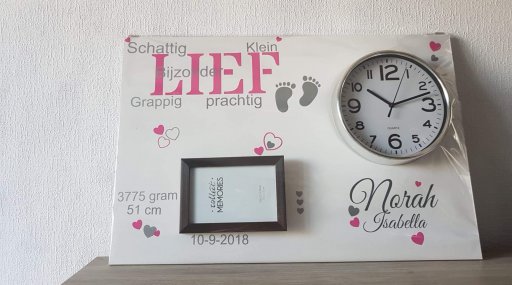 Geboortebord lief met fotolijst en klok