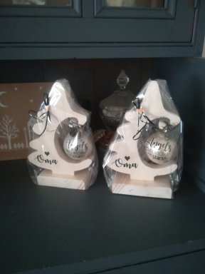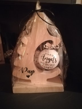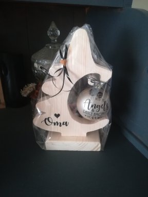 Kan evt ook met andere tekst, zowel op het boompje als op de kerstbal.