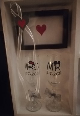Glazen kunnen evt. permanent geëtst worden tegen meerprijs van € 5,00 voor de set champagneglazen.