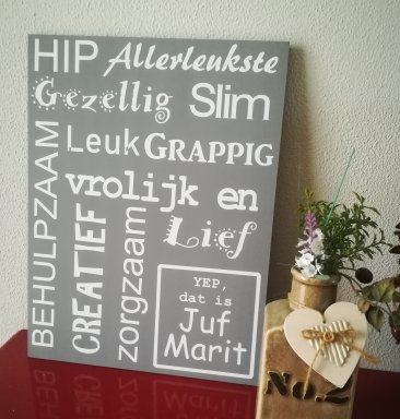 Kan ook met andere tekst, andere kleur bord of kleur tekst.