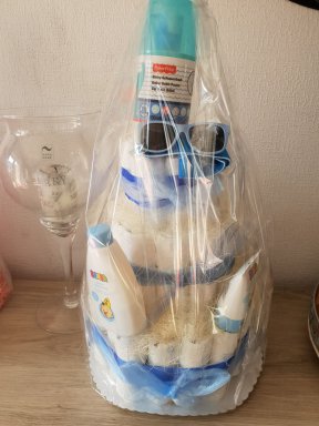 Bestaande uit luiers, zonnebril en verzorgingsproducten.