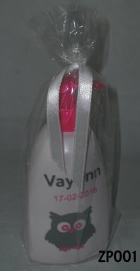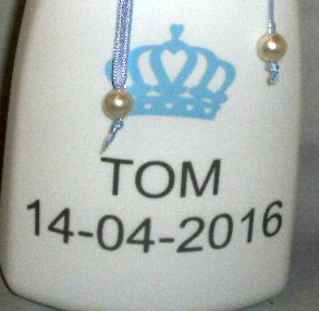 Zeeppompje met naam en datum.
