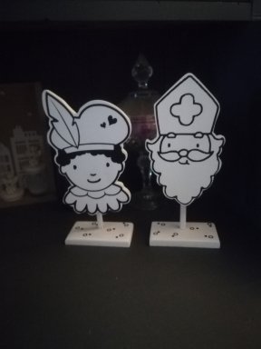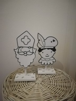 Afmeting per figuur: 12 cm breed en 25 cm hoog (incl standaard)