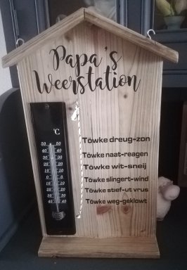 Met thermometer en touwtje met tekst.