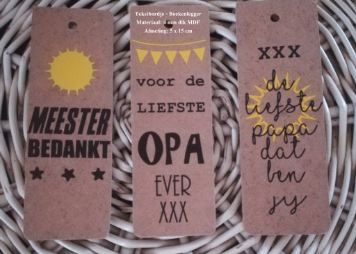 Boekenlegger - Tekstbordje gemaakt van 4 mm MDF.