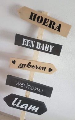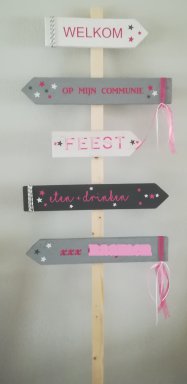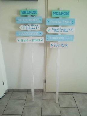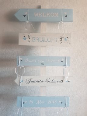 Houten wegwijzer pijl 5 stuks op lat (circa 1,65 hoog)